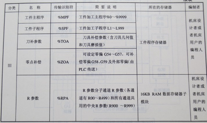 ?使用SIEMENS 810T/M系統(tǒng)的數(shù)控機(jī)床軟件部分可分為啟動(dòng)軟件、NC和PLC系統(tǒng)軟件、PLC用戶軟件、機(jī)床數(shù)據(jù)、參數(shù)設(shè)置文件、工件程序等,詳見(jiàn)表2-2.其中II、III類程序、數(shù)據(jù)存儲(chǔ)在NC系統(tǒng)的隨機(jī)存儲(chǔ)器中,是針對(duì)具體機(jī)床的,存儲(chǔ)這些數(shù)據(jù)的存儲(chǔ)器機(jī)床斷電時(shí)是受電池保護(hù)的,如果電池失效這些數(shù)據(jù)將丟失。所以,用戶需要將這些數(shù)據(jù)傳出,做電子備份。